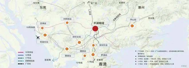 地铁配套:在远程规划中有17号线二期“鹅公岭站”就在项目附近,目前可以去到距离约3公里外的平湖枢纽站,在《深圳市轨道交通线网规划2016-2035年》远期规划中,平湖枢纽将汇聚10号/17号/18号地铁线,以及深惠城际,厦深铁路,广深铁路等多条主干线,将平湖枢纽定位为四主五辅中的“五辅”枢纽之一。