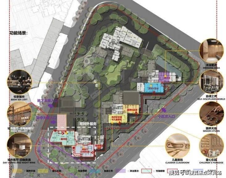 小区内部虽然占地有限,但在设计上充分考虑了业主的需求,最大化利用了公共活动空间。项目包括城市会客厅、街角公园、养生植物园、露天泳池等多功能社交和休闲场所。小区内的架空层还设置了不同主题的活动空间,如儿童剧场、健身瑜伽区、老人棋牌区等,极大丰富了业主的社区生活。