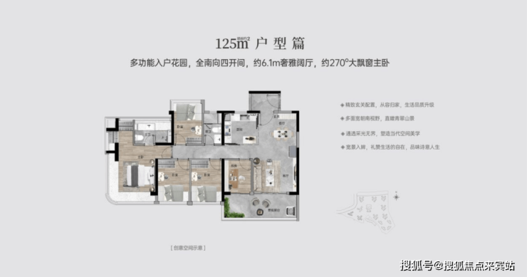 建面约125㎡ | 四房两厅两卫,南向大面宽采光,超100%高使用率户型,彰显大家风范。