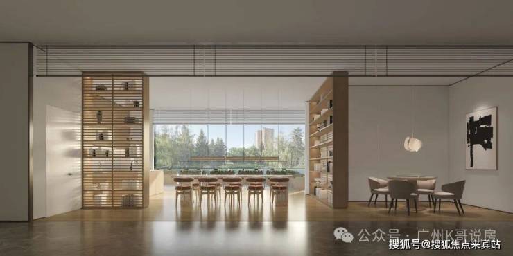 开放式餐厨连通客厅,形成LDK方厅,无论是朋友聚会或是家族聚餐等不同社交需求,都能轻松容纳。观景尺度也相当豪横。