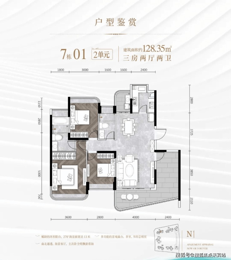 打造理想人居,户户朝南,纯270°看海,景观面阔达近13米,卧室转角飘窗,美景尽藏