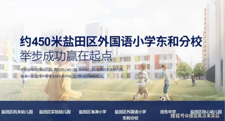 优享市一级学校盐田外国语小学东和分校、省一级学校田东中学,精英教育,享积分入学权益;项目自带9班制幼儿园,12年教育无忧。