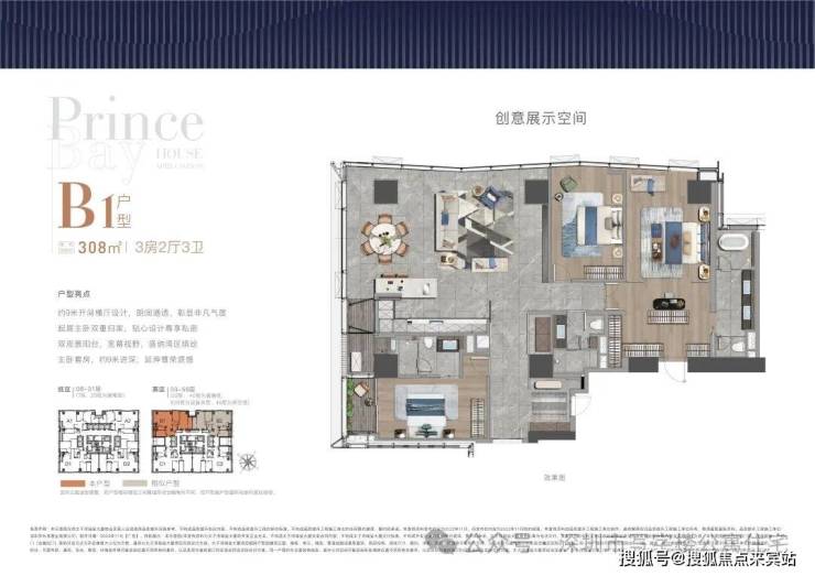 【建面308㎡3居】3室2厅3卫, 南·西朝向