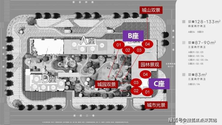 面积:89㎡3房1卫。89㎡3房2卫,128-133㎡4房2卫,