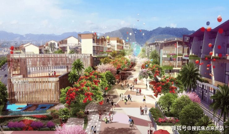 商业街区:规划了餐饮、嘉年华、趣店和特色民宿四大板块、七大山居主题风情街区,打造吃喝玩乐购一站式度假生活。
