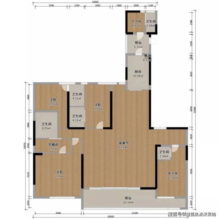 170㎡→ 实用约195+15㎡的4+1房4卫