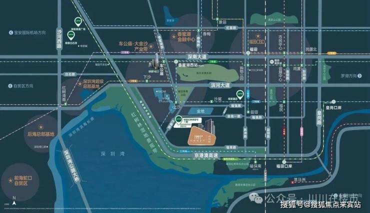 片区未来还将建设一批超高层标志性建筑,整合已形成的红树林风光带、福田体育公园和未来金地工业区改造的产业空间,塑造福田滨海地区的门户形象。