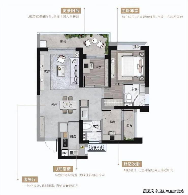 项目坐落于横沥岛岛尖位置,北面江景无遮挡,千亿旭辉华南首个G系高标,名匠级设计团队加持,打造华南第一款“方厅”户型;