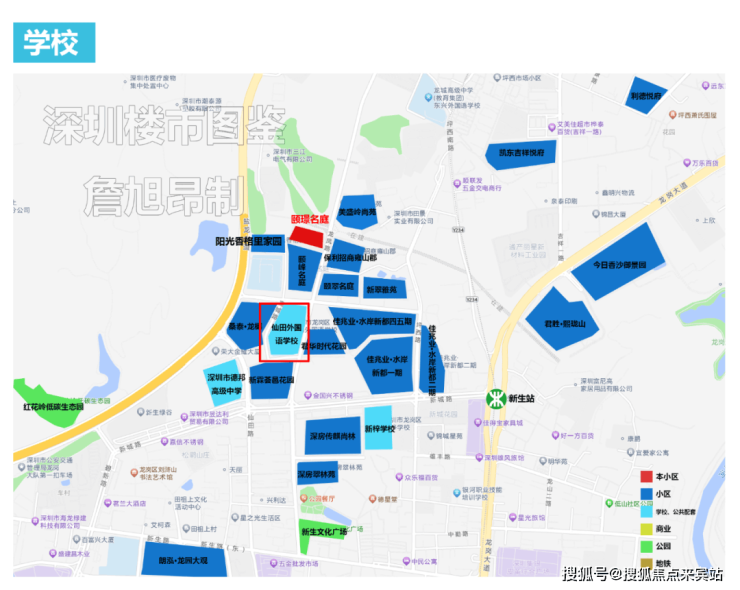 项目旁边为仙田外国语学校(九年制),二期自带12班幼儿园