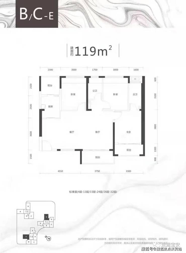 ABC三栋 总高34层 总户数382户 车位总585个 车位比:1:1.5,相当充足