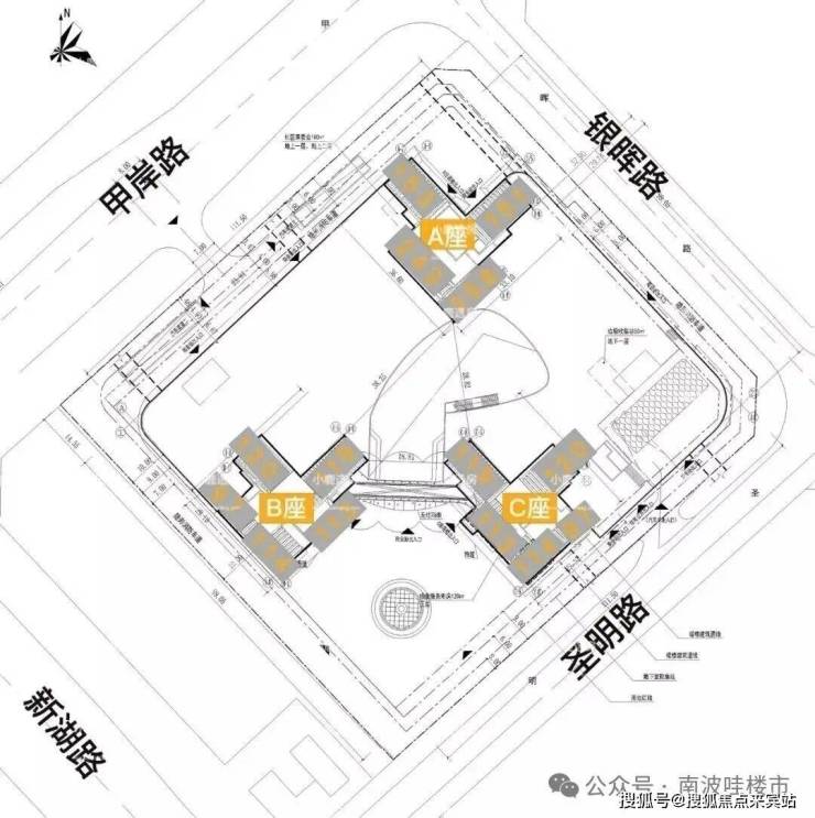 总建面约 10.56万㎡,商业建面约 1.15万㎡,住宅共有 三栋塔楼,建面约 4.86万㎡,三栋住宅 一层二层为商业,三层以上为住宅。