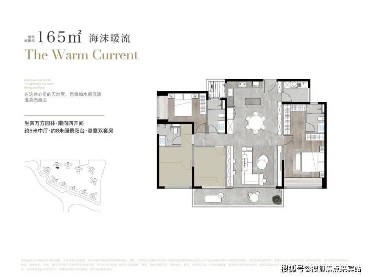 当前主推的142㎡四房户型,是广州千万级四房市场的销冠产品。东区仅有3栋住宅,纯四房配置,步行40米即达地铁站,同时靠近滨水商业,生活便利。项目园林规划面积达1.5万㎡,户均享受约50㎡园林空间,罕见的高舒适度配置。住宅区划分五大景观功能区,包括主入口林溪港湾、拾阶云台、漂浮会客庭院、亲子儿童乐园及运动场地,提供全龄段居住体验。