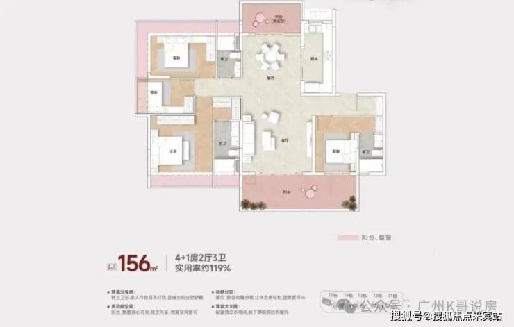 最稀缺的约156平四房,可以扩展成4+1房2厅3卫的格局。
