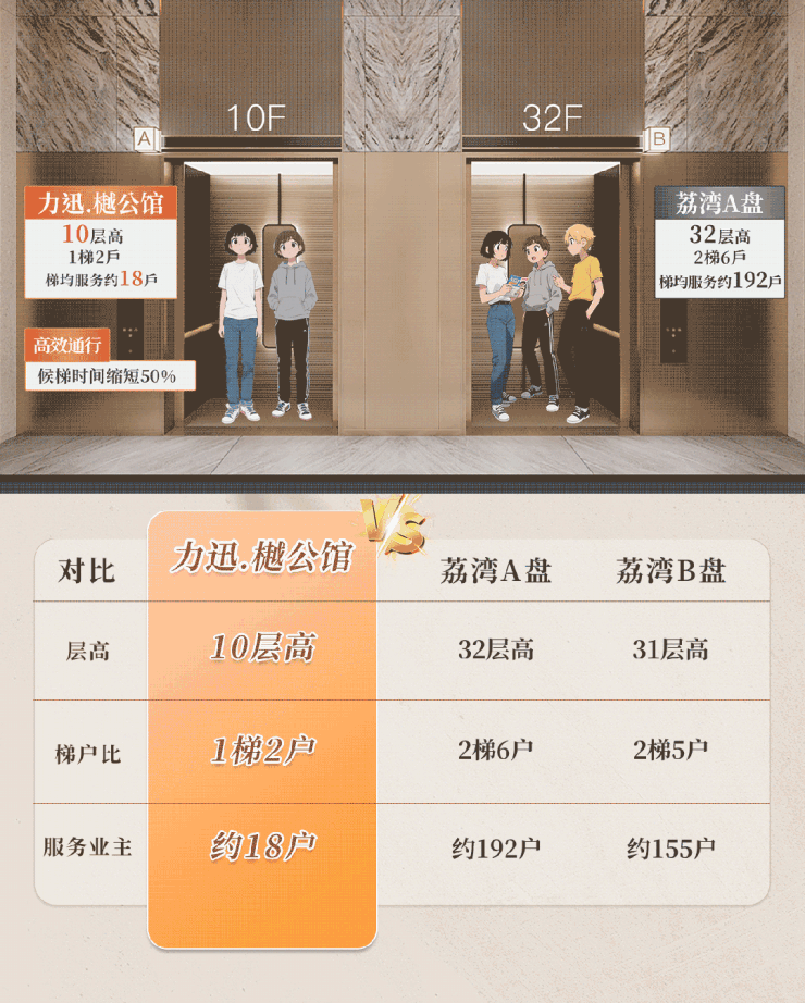 一梯两户只服务于18户业主,无惧上班高峰期拥挤人群,出行从容,生活高效。