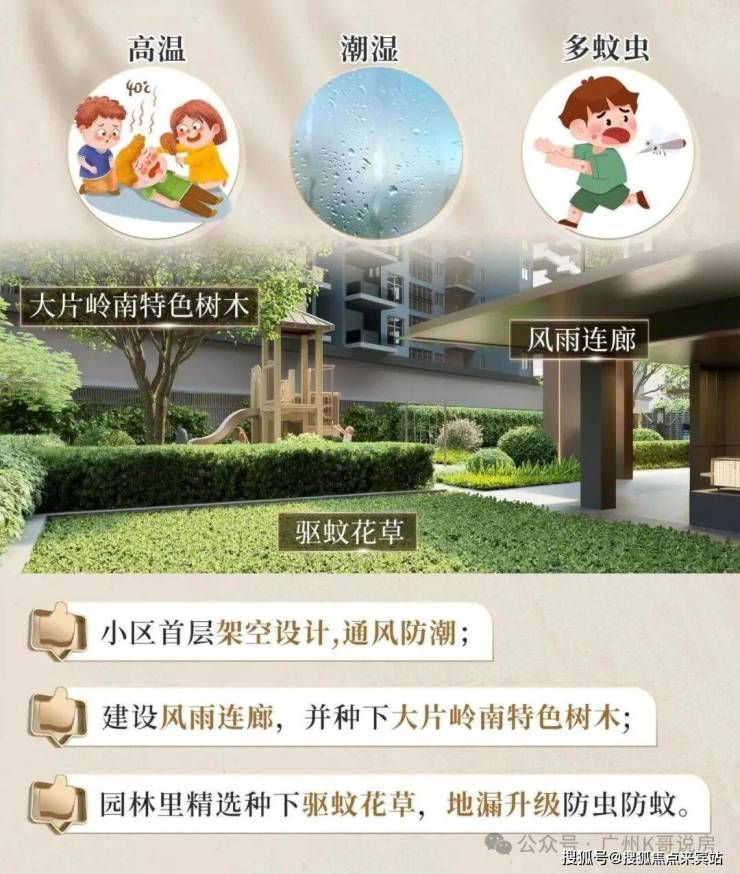 针对广州回南天的气候特色,小区首层做了立体架空设计,通风防潮;