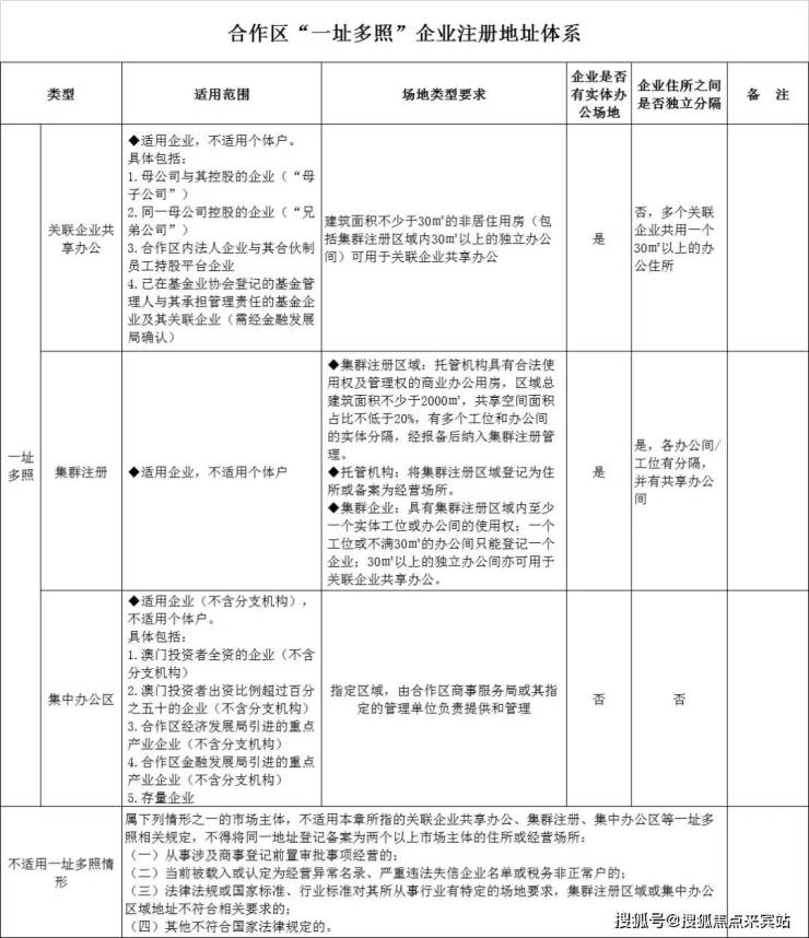 2022年9月19日起正式实施《横琴粤澳深度合作区市场主体住所登记管理办法》,主要亮点包括:创设和完善包含“关联企业共享办公”“集群注册”“集中办公区”在内的“一址多照”制度体系,满足各类企业需要。通过降低注册门槛、企业运营成本,支持广大投资者特别是澳门投资者“发展向实”。