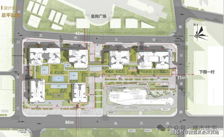 其中一期占地面积为31428.9㎡,计容建筑面积174082.2㎡,容积率5.54,共五个单元塔楼,其中一至四单元为回迁住宅,总面积101500㎡,五单元为一期唯一可售住宅,总建筑面积30807.64㎡,商业41503.6㎡,停车位1266辆。