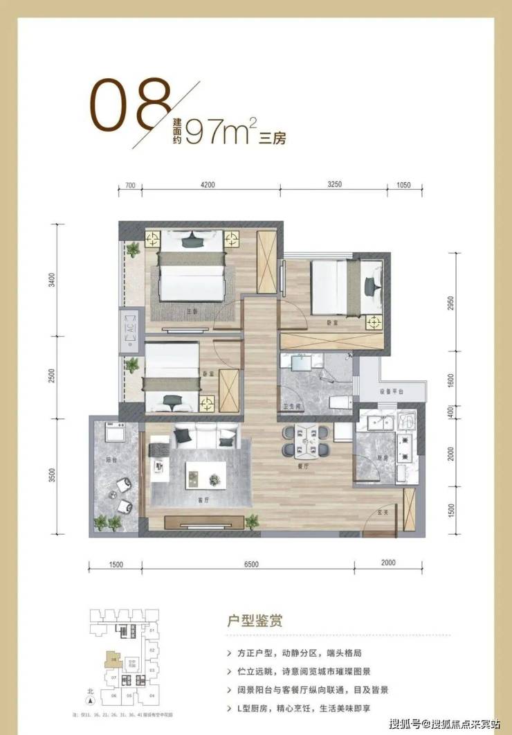 08约97㎡ 3房2厅1卫 总价:约1068万 西向