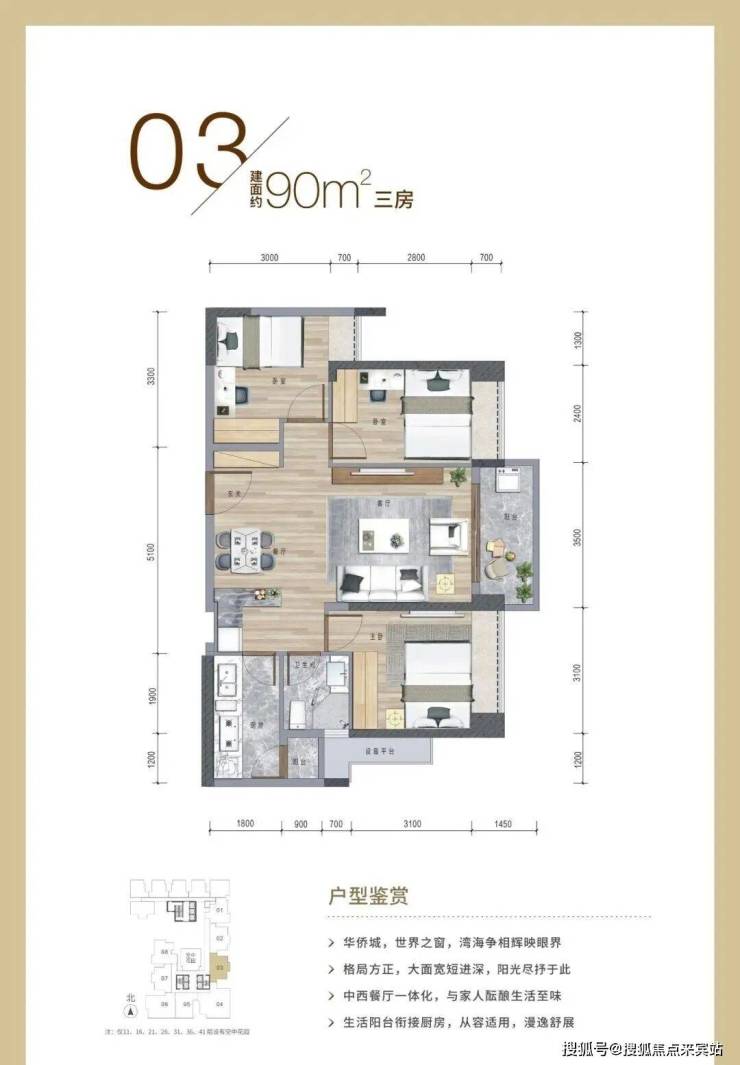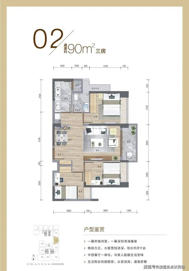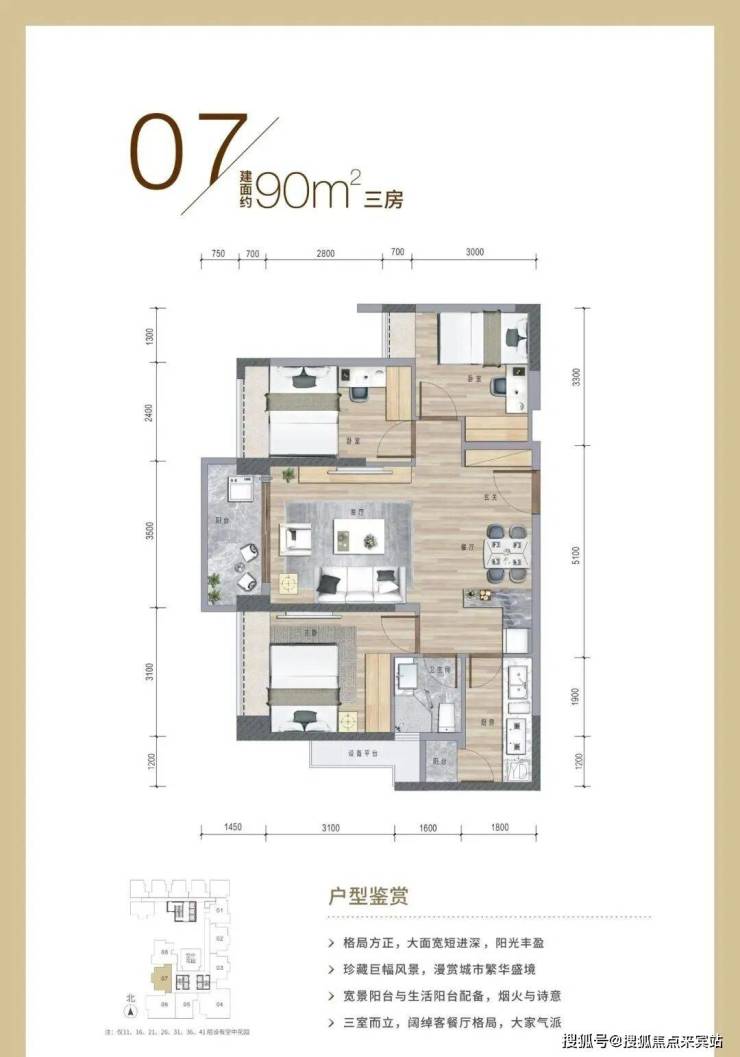 07约90㎡ 3房2厅1卫 总价:约990万 西向