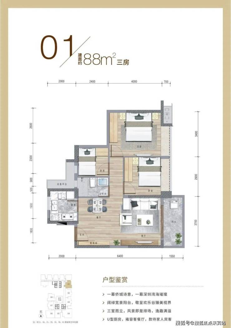 约37万㎡湖山大境:瞰燕晗山翠色,赏天鹅湖、燕栖湖悠然,城市与自然合鸣共奏,山湖与大地敬供鉴阅约232万㎡公园盛境:圈阅华侨城湿地公园、燕晗山郊野公园、大沙河公园、深圳湾公园,众园拥戴,万物峥嵘约200万㎡果岭阔境:沙河高尔夫球会、名商高尔夫球会环伺在侧,生活的优雅态度与圈层会晤意趣相映自带1.2万㎡主题体验式街区,欢享益田假日广场、欢乐海岸、万象天地、深圳湾万象城,举步阅尽繁华约550万㎡旧改版图,以巨擘体量、恢弘手笔,盛启白石洲新纪元;规划集高端住宅、商办与酒店、商务公寓,公建配套(九年一贯制公立学校、幼儿园)等,除却天赋优越的现在,其未来更值得期待选用住宅楼迪拜“公主塔”等豪宅标配—玻铝立面,以流光巨幕献映都会盛境,钻光百年绽放。三重云阶花园,与城市繁华竞秀,环形跑道、童真乐园、凉亭水景、精致会所等多层次园林场景错落有致。五重艺术大堂,玉石的臻雅与纹脉的灵动;人性化奢阔电梯,优雅出行;臻质地下车库,铝扣板吊顶,礼迎人物荣归。(大堂效果图)深业沙河集团是深业集团有限公司所属的全资国有企业,历年来深耕深圳,同时布局全国多个城市。始终着力于城市更新业务,2020年倾情钜献深业鹤塘岭花园,致敬城市,为美好未来发声。项目户型图