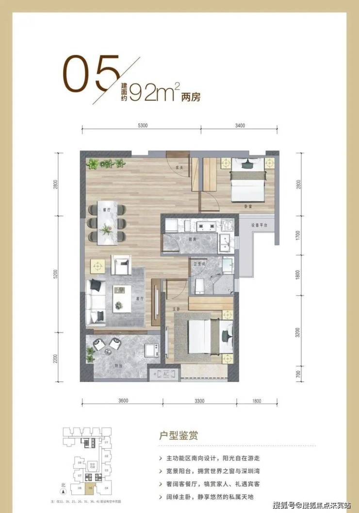 05约92㎡ 2房2厅1卫,总价:约1000万 南向