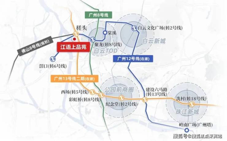 江语上品苑所在的珠江西航道地段,正处于白云区“五片协同、多核驱动”的核心发展区域。该区域被划为数字经济创新走廊,未来将依托华为等企业,推动产业集聚与发展,成为广州的新兴经济中心。交通方面,江语上品苑紧邻槎头地铁站,广州12号线和13号线将在2024年通车,未来还将有佛山8号线、白云二线等多条轨道交通线路贯通,使得出行非常便捷。项目距离新白云火车站和白云新城都仅需短短几站地铁,地理位置优势明显。