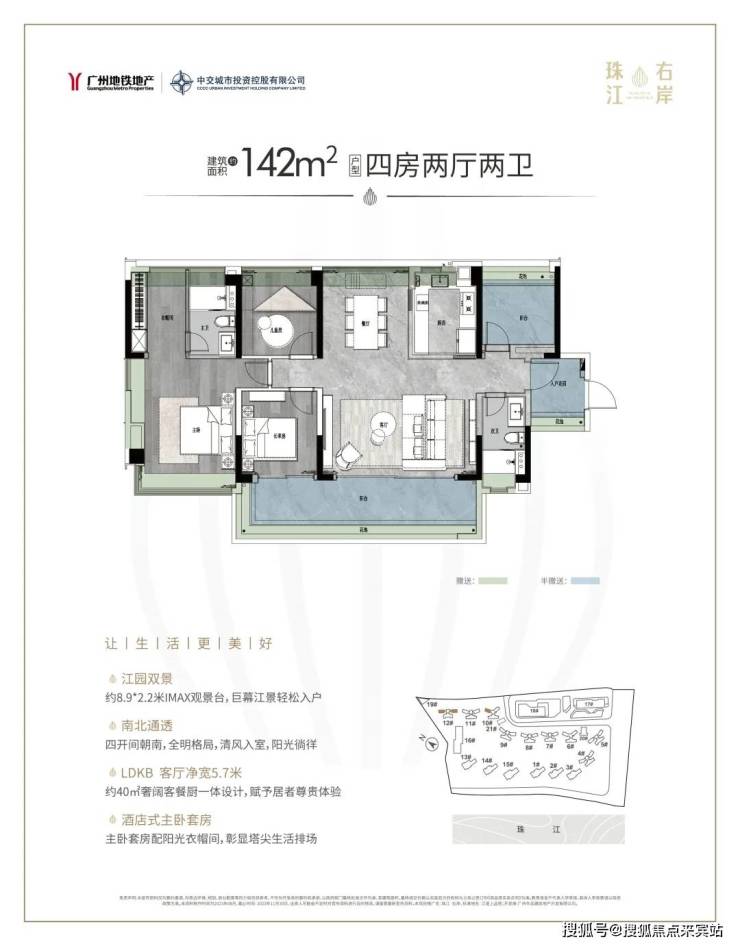 江语上品苑的最大亮点无疑是其绝佳的江景视野,所有住宅均为南向江景房,项目采用现代高端建筑设计,拥有大面积的宽景阳台和270°转角窗,让住户能够尽享珠江壮丽景色。项目总占地面积约9.9万㎡,总建筑面积为38.8万㎡,规划有15栋住宅楼及配套的商业综合体、幼儿园等设施,整体配套丰富,功能完善。项目的建筑风格现代大气,外立面采用玻璃幕墙设计,通透感十足,进一步扩展了视野。
