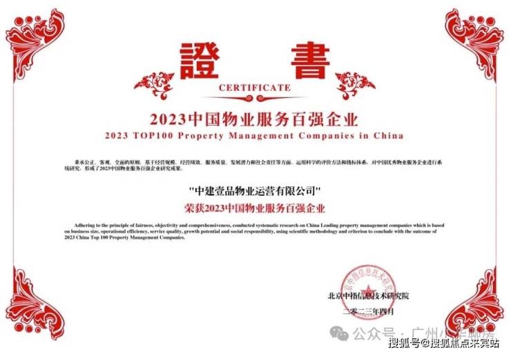 中建壹品物业荣获“2023中国物业服务百强企业”、“2023中国国有物业服务优秀企业”称号