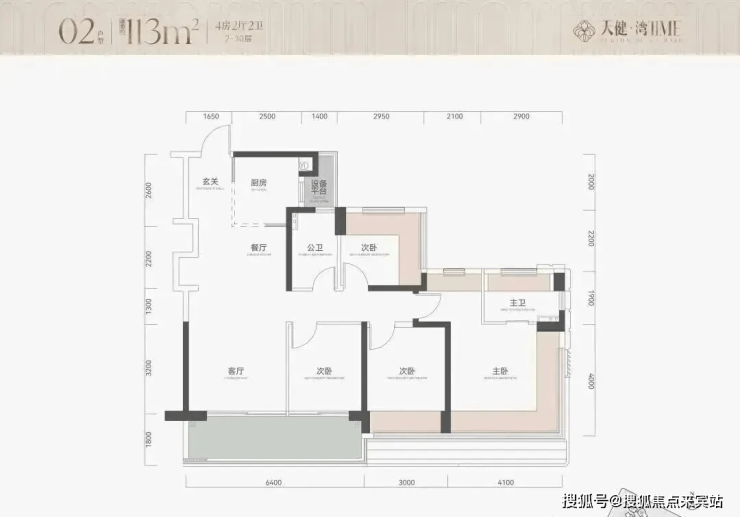 113㎡4房2卫,竖厅户型,朝南看海,6.4米宽大阳台;