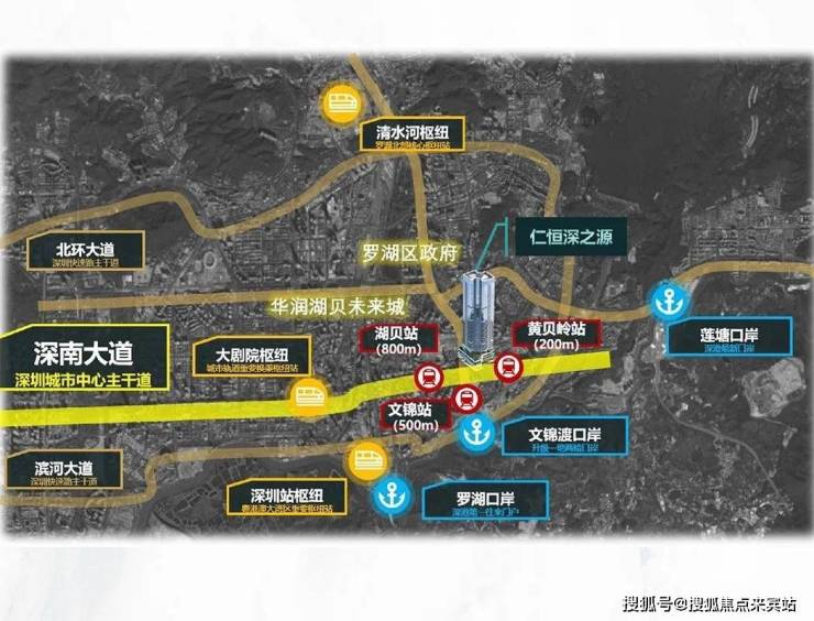 占位:国家级区位 深港融合C位0世界四大湾区之一粤港澳大湾区领头羊.国家战略赋能:2香港北部都会区将全域对接罗湖,项目距离文锦渡口岸仅800米,深港融合第一触点