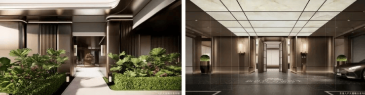 地下车库大堂:艺术灯光+石材肌理,酒店式尊贵感。