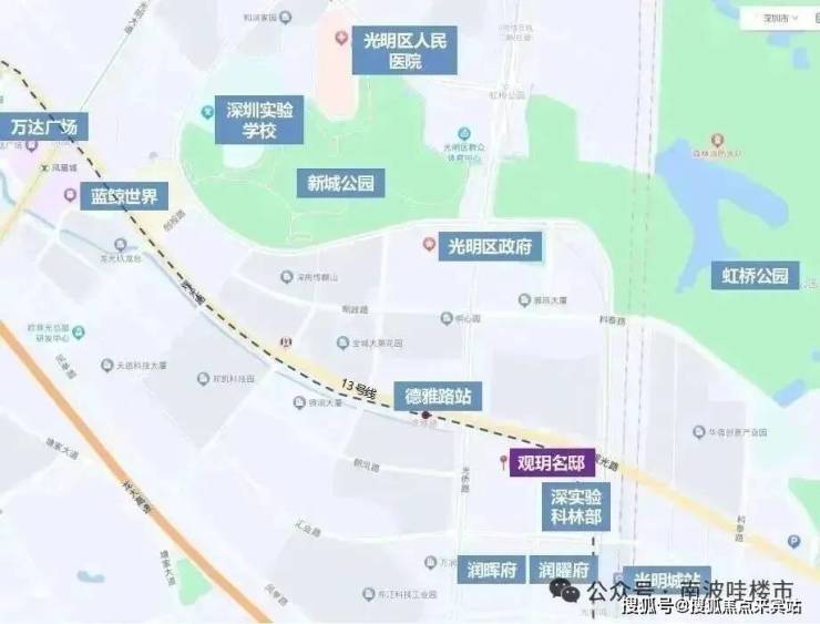 中建观玥名邸位于光明城凤凰街道观光路与光侨路交汇处,是中建八局在深圳开发的首个住宅项目,邻近地铁13号线德雅路站,属于凤凰城片区,光明城站2地铁1高铁联通大湾区区政府、体育馆、文化艺术中心以及万达、蓝鲸世界等商圈均在项目2公里范围内,享受成熟的都市生活圈配套,规划为世界一流科学城和深圳北部中心。