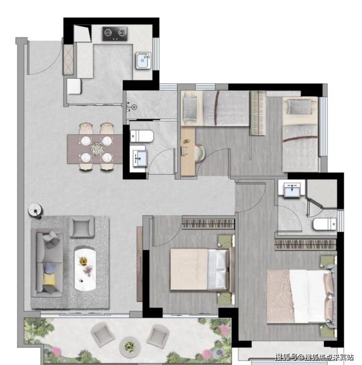 高实用空间:动静分明 生活井然有序L型厨房:动线流畅 让烹饪更自在客餐厨直连:通透无界 全家欢愉的生活场双阳台设计:辽阔视野纳藏无限风光