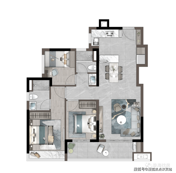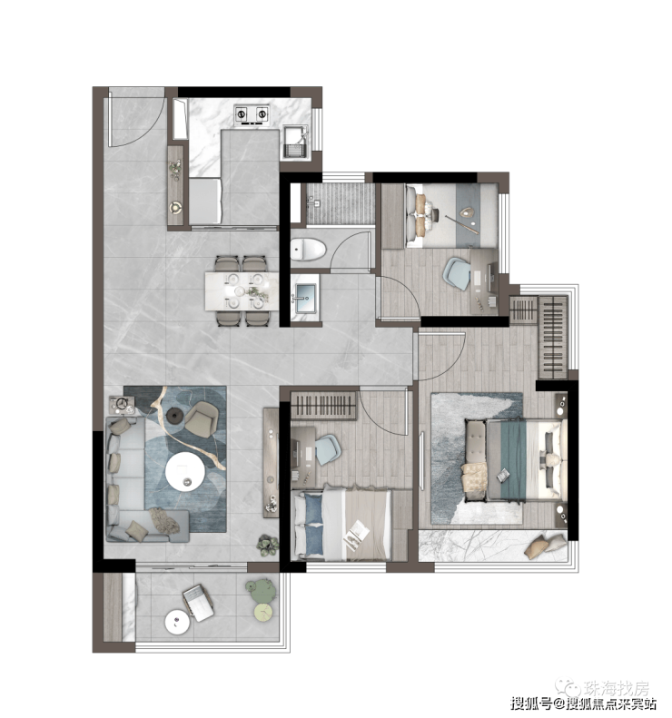 「建筑面积约76㎡丨三房两厅一卫」