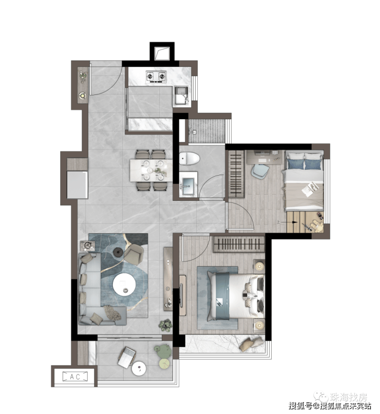 「建筑面积约67㎡丨两房两厅一卫」