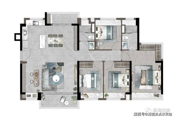 萃取地道岭南风韵,经典岭南审美简约呈现,传统造园手法与现代园林技术结合,首创新岭南主义风格;近9米架空层,保障通风凉爽舒适;南偏东/西33度角,取得最佳通风采光效果;点式阵列布局,将法线错开,最大化景观视野和楼距空间。
