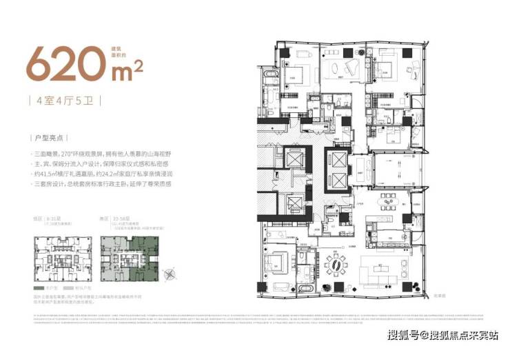 308㎡户型:可合并为620㎡的灵活布局,满足多代同堂需求