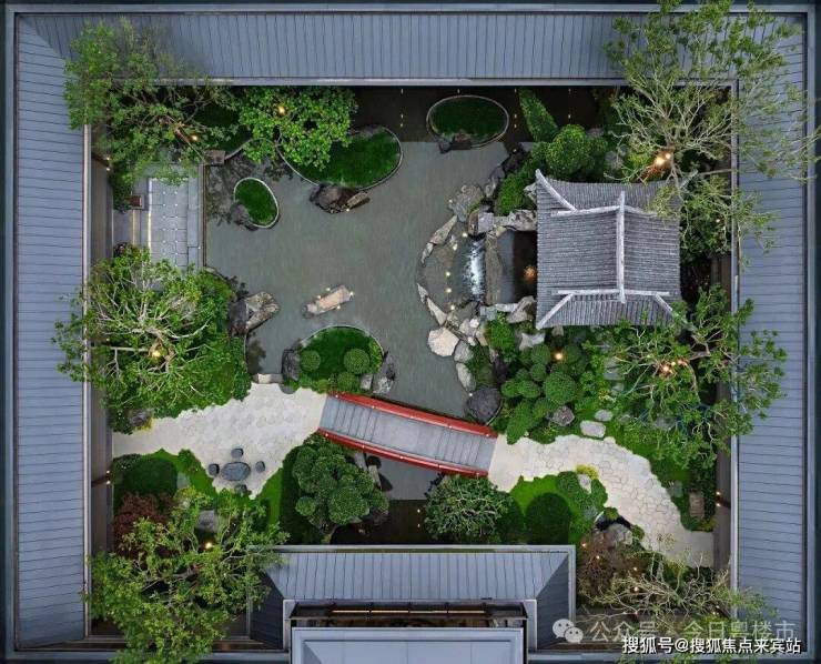 “一园三堂”归家轴线串联起礼仪前庭、金水廊桥、山水隐园三境,更以“一环三洲、五进十园”立体景观架构,重构岭南人居美学——礼仪前庭青松列阵,月洞门后掩映叠石流水,奠定世家门仪。