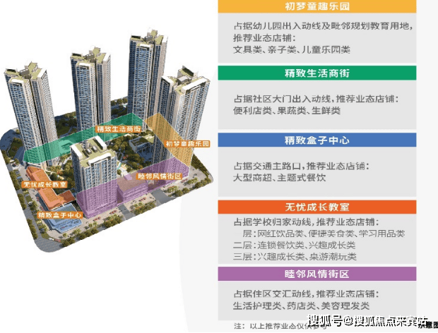 ✨7⃣整体规划 全龄乐学成长性街区开放式街区+盒子mall+独栋百变商业,多重业态形式组合,构建儿童教育主题——全龄乐学成长性街区,多元业态为辅,填补住区教育商业空缺。