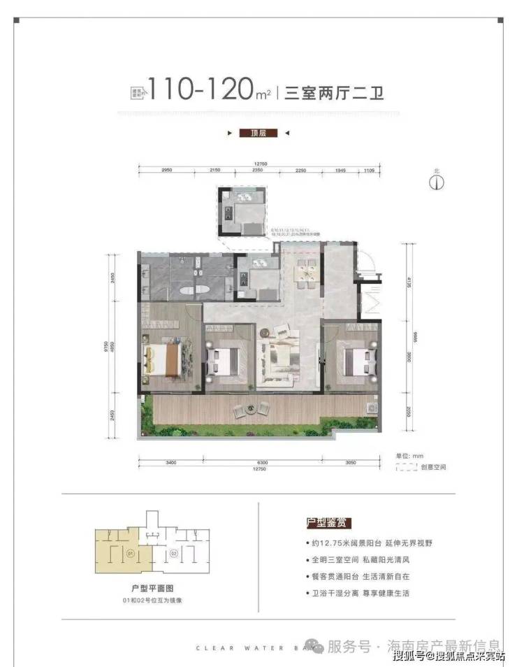户型设计:𝟑室𝟐厅𝟐卫 建筑面积:110㎡
