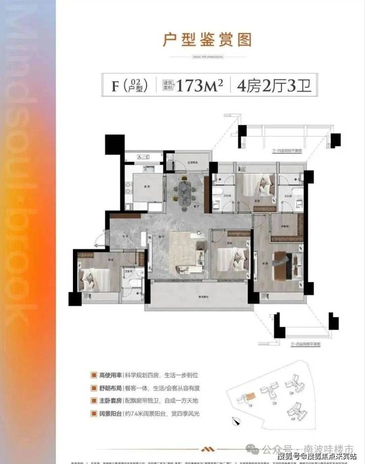 户型产品:建筑面积约91-173㎡三至四房