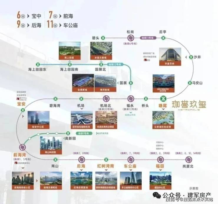 交通配套:步行可达的是地铁11号线塘尾站,衡量地铁配套的价值,不能只看通勤距离,还得考虑线路串联的城市资源,11号线沿途站点都是城市地标级的综合配套,可实现6站到宝中,7站到前海,9站到深圳湾后海,11站到车公庙的快速轨道通行,可以说是“全城精华,一轨直达”。