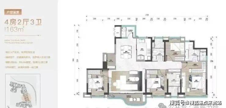 建面约163平四房户型