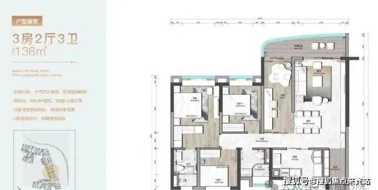 建面约136平四房户型