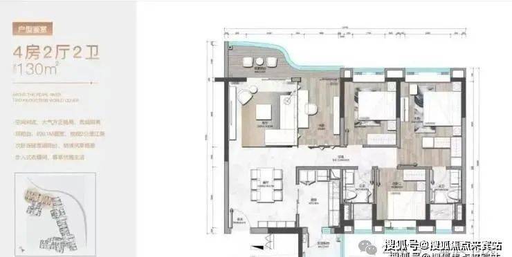 建面约130平四房户型