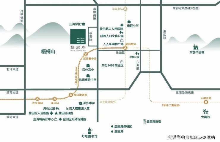 望辰府位于盐田港片区,中青路半山溪谷花园西侧,梧桐山半山腰上。这个位置,属于盐田港全新开发的区域,附近楼盘基本都是2015年后新建的,城市界面相当新。