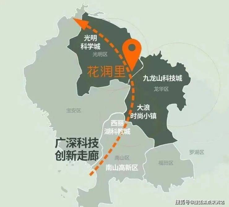 花润里所处的白花片区,位居北部科创金三角——光明中心、观澜九龙山科技城、大浪时尚小镇三大区域的核心腹地。