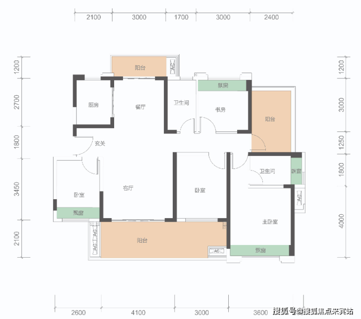 墅质级4+1房、南北双阳台(主阳台超7米)
