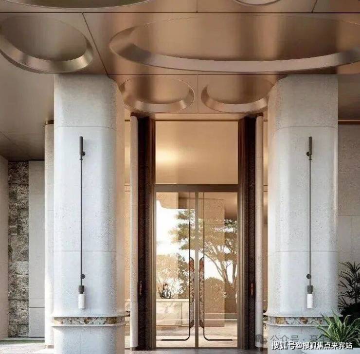 每栋的独立入户大堂,采用无菱角高端石材,风格与大门相呼应,效果图看起来挺高端奢华的。