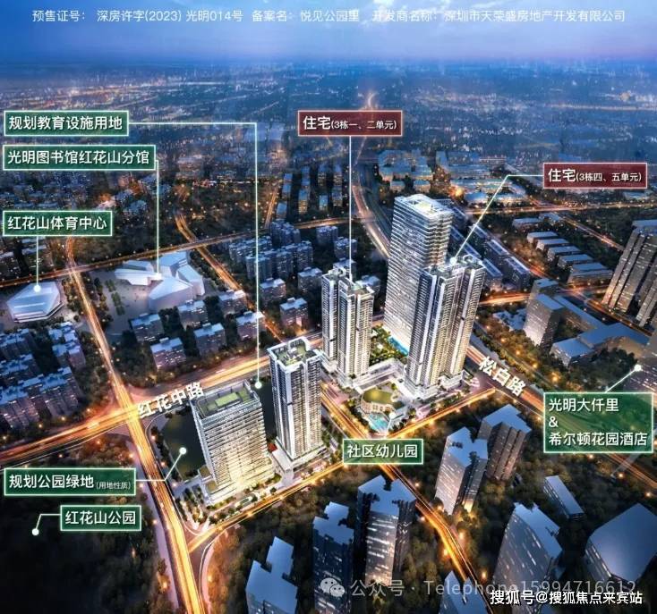 宏发悦见公园里,位于深圳市光明区公明街道松白路与红花中路交汇处,是公明片区的核心区域。该项目由深圳市天荣盛房地产开发有限公司开发,占地面积约3万㎡,建筑面积约33.8万㎡。项目主打约85-120㎡的3-4房住宅,产权年限为70年,交房时间和交付标准待定。